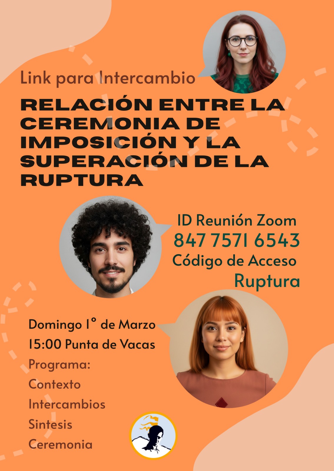 Domingo 1 de marzo | 15 Hs Punta de Vacas ID ZOOM: 847 7571 6543Código de acceso: Ruptura